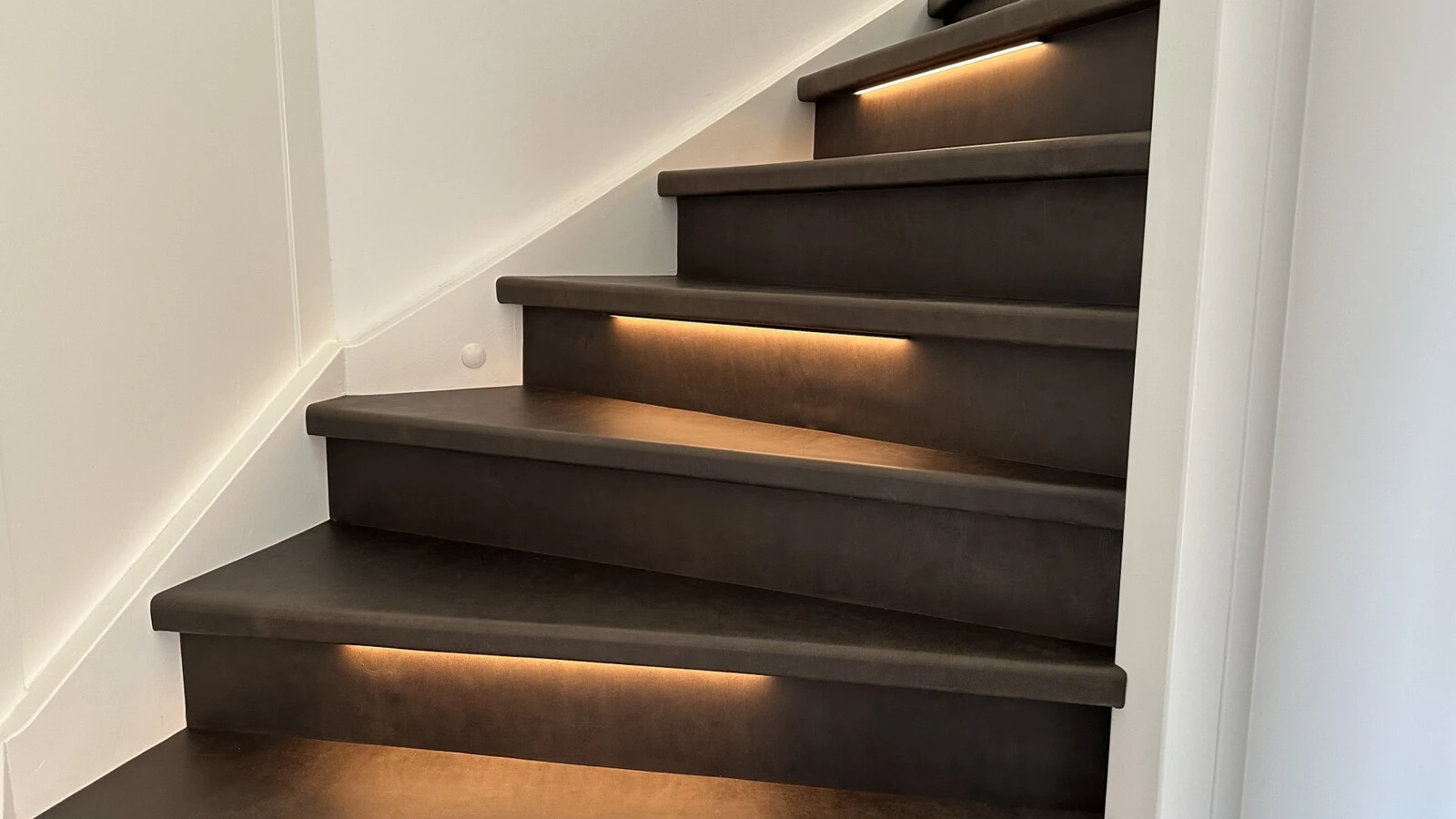 Een traprenovatie met verlichting combineert het beste van twee werelden: de tijdloze luxe van echt leer en de praktische voordelen van geïntegreerde verlichting. Leer voegt warmte, karakter en comfort toe aan je interieur en zorgt voor een uitnodigende, stijlvolle sfeer. De geïntegreerde verlichting biedt niet alleen extra veiligheid en beter zicht in de avonduren, maar creëert ook een subtiele ambiance die de uitstraling van je woning versterkt.