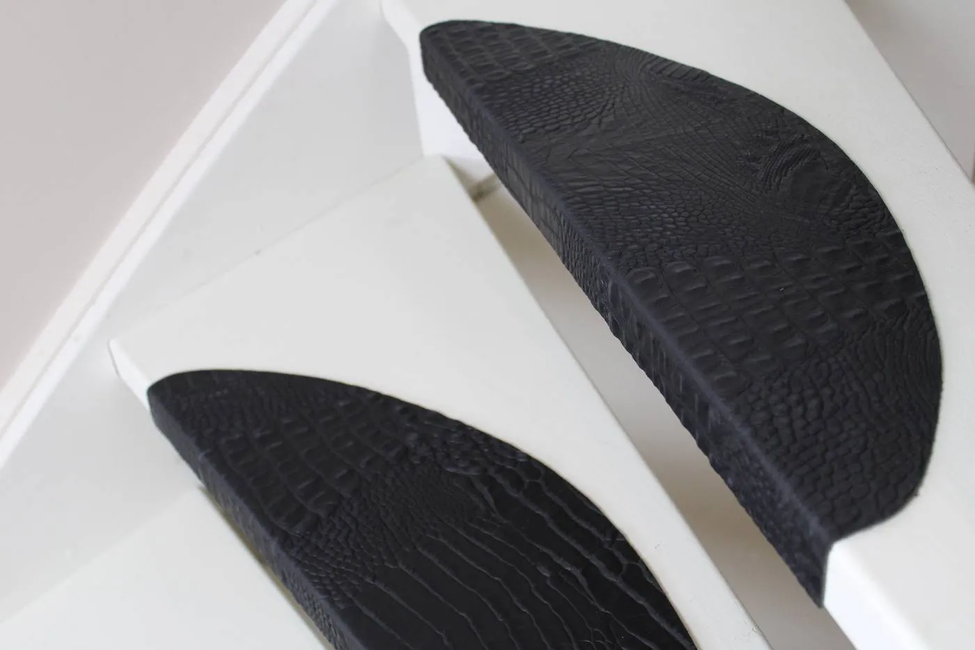 Bij iedere trede komt de luxueuze croco-structuur prachtig tot zijn recht, terwijl het plaatsen van de matten eenvoudig verloopt.