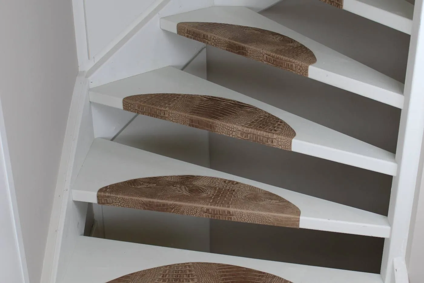 Bij elke trede komt de croco-structuur prachtig tot zijn recht, terwijl het plaatsen van de matten eenvoudig verloopt.